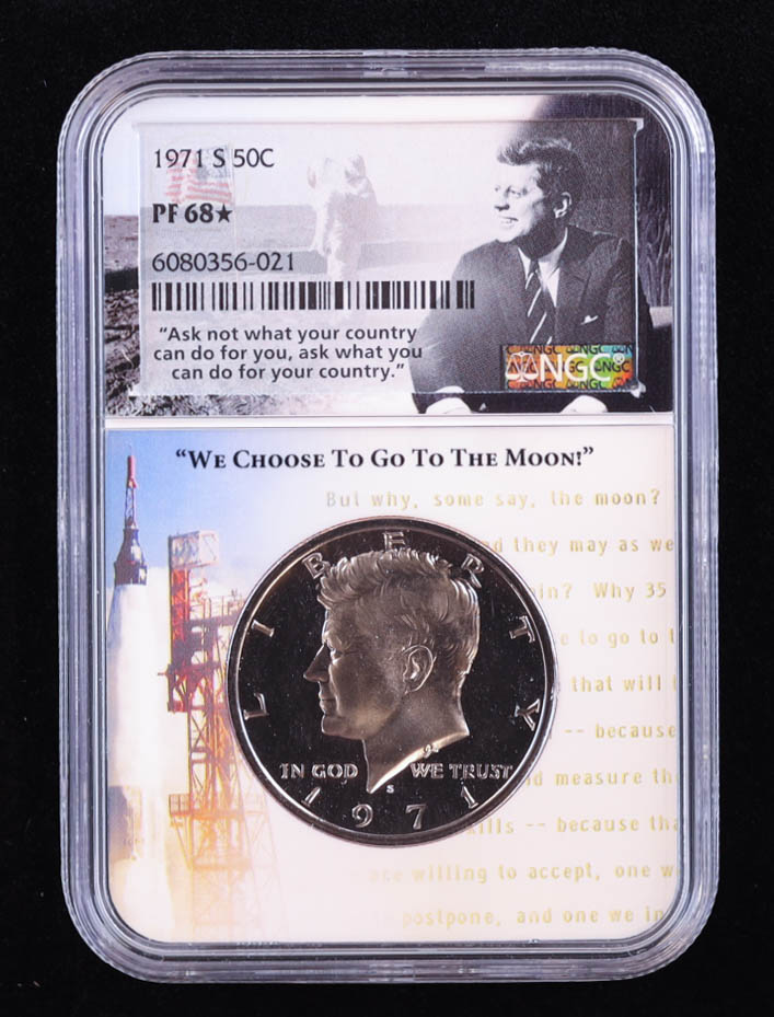 1971-S Kennedy Half Dollar Proof - JFK Moon Landing Core (NGC PF68*)