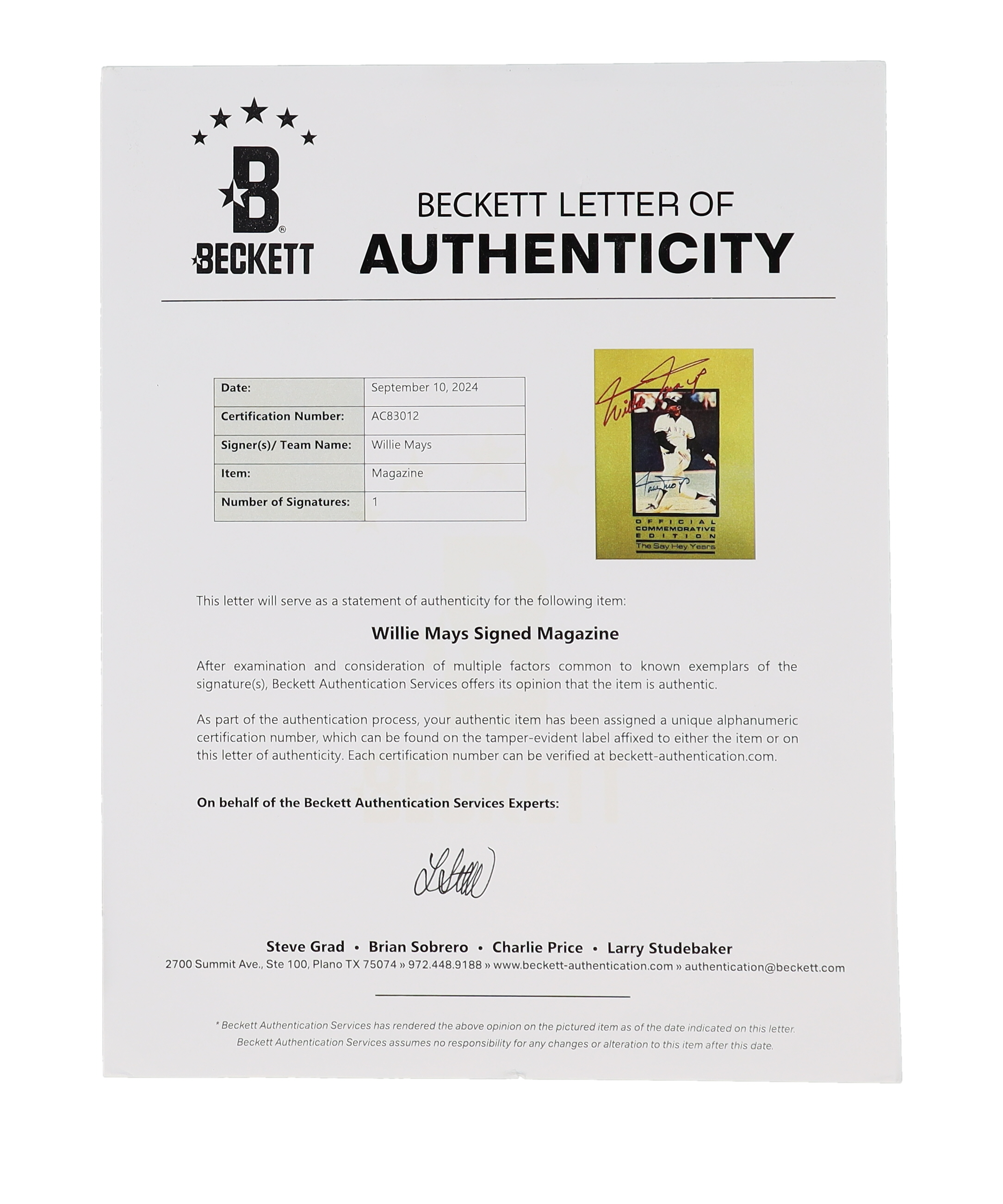 Willie Mays Signed Willie Mays "The Say Hey Years" Official Commemorative Magazine (Beckett)