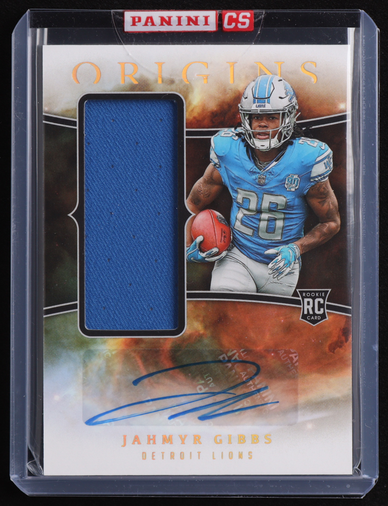 Jahmyr Gibbs 2023 Panini Origins Rookie Jumbo Jersey Autographs #4 EXCH RC