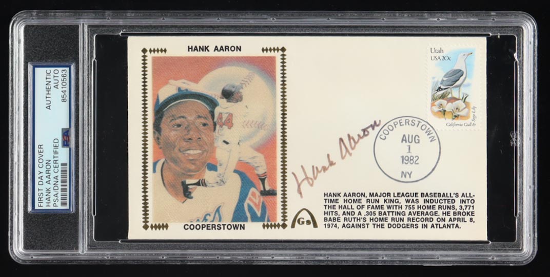 Hank Aaron Signed "Cooperstown" 1982 FDC Envelope (PSA)