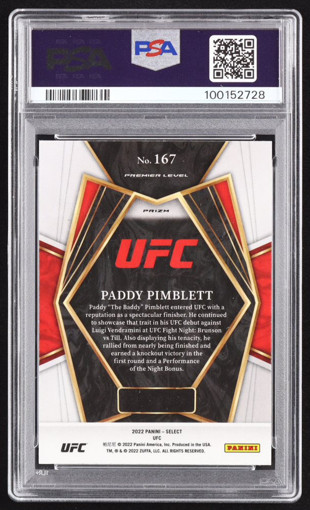 Paddy Pimblett 2022 Select UFC Prizms Scope #167 RC (PSA 10)