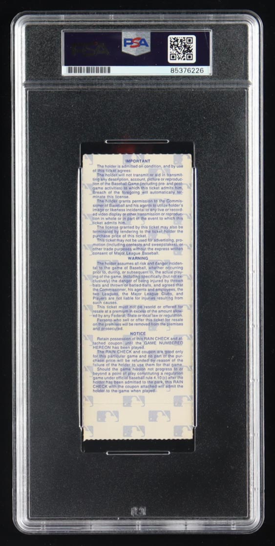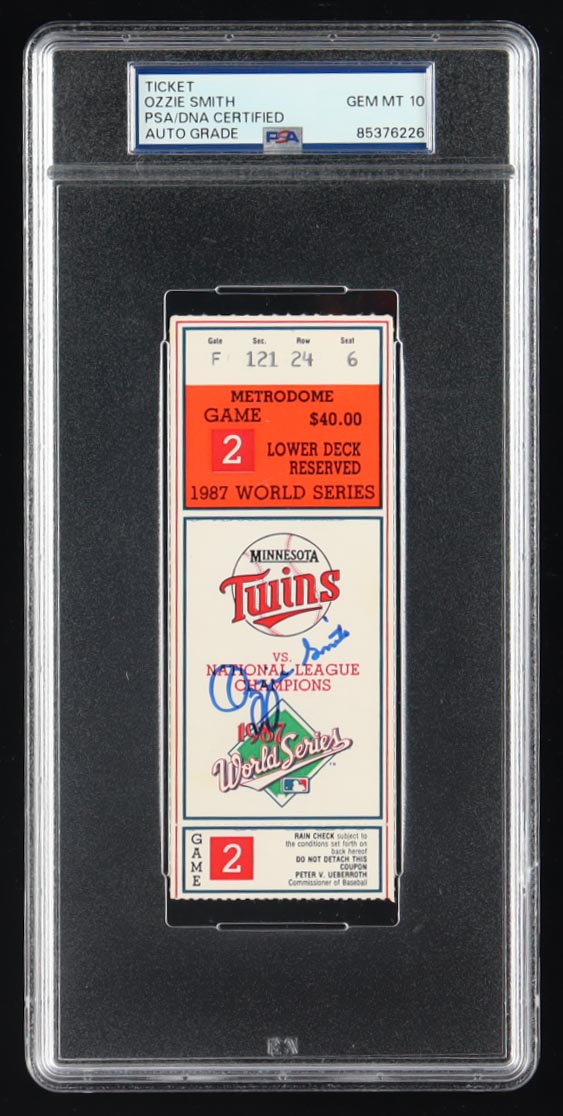 Ozzie Smith Signed 1987 World Series Ticket (PSA 10)