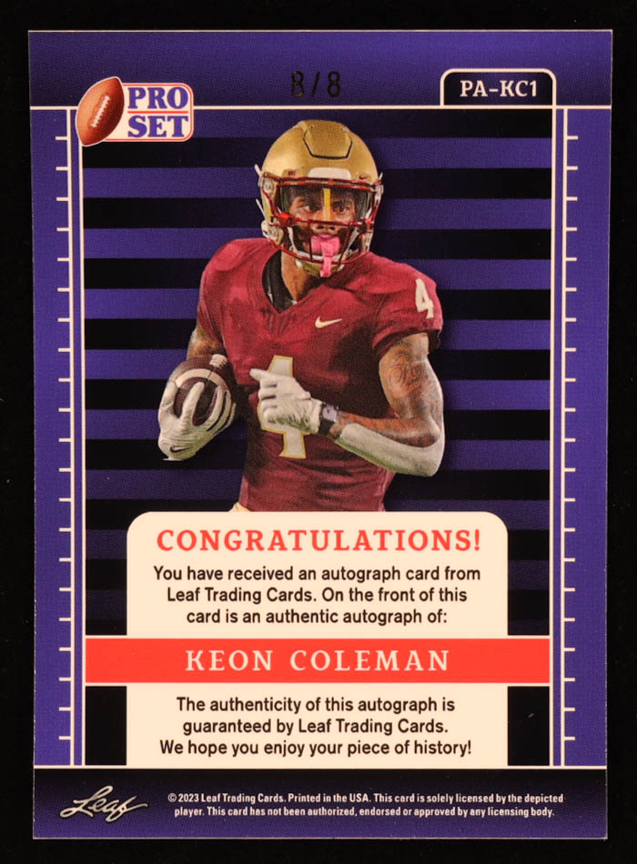 Keon Coleman 2023 Leaf Pro Set Metal Autographs Pulsar Blue #PA-KC1 RC #8/8