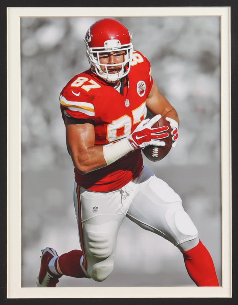 Travis Kelce Custom Framed Jersey Display With Super Bowl LVII Champions Pin & (2) Cloth Team Logo Patches