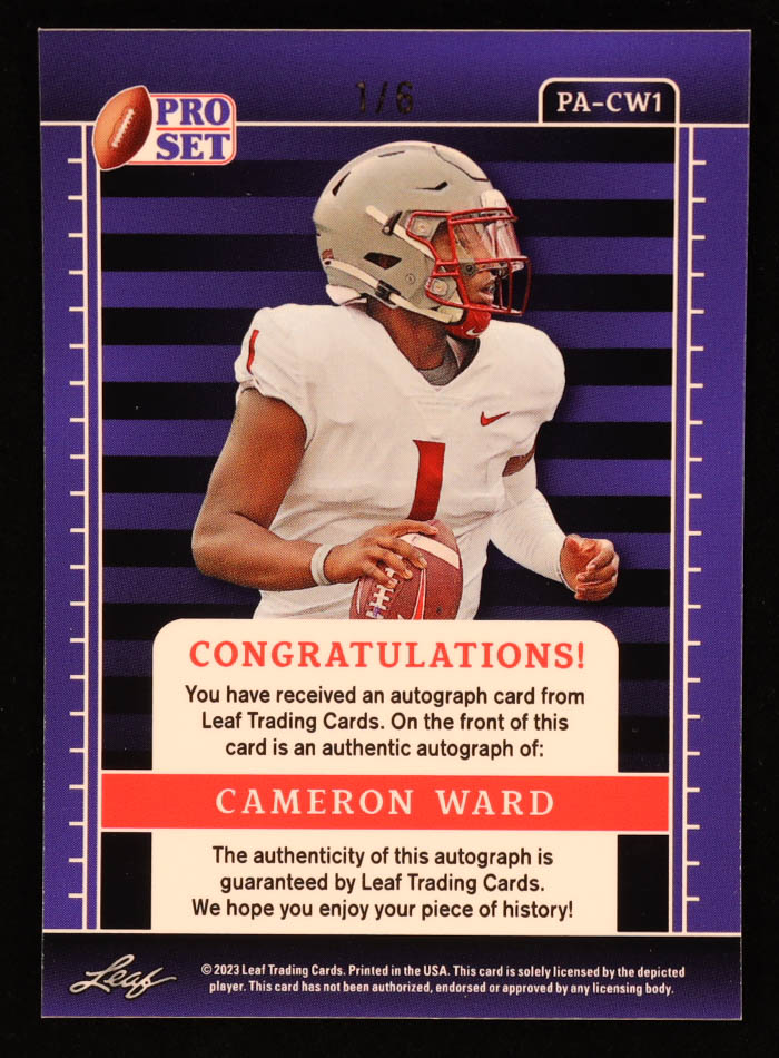 Cameron Ward 2023 Leaf Pro Set Metal Autographs Pulsar Purple #PA-CW1 RC #1/6