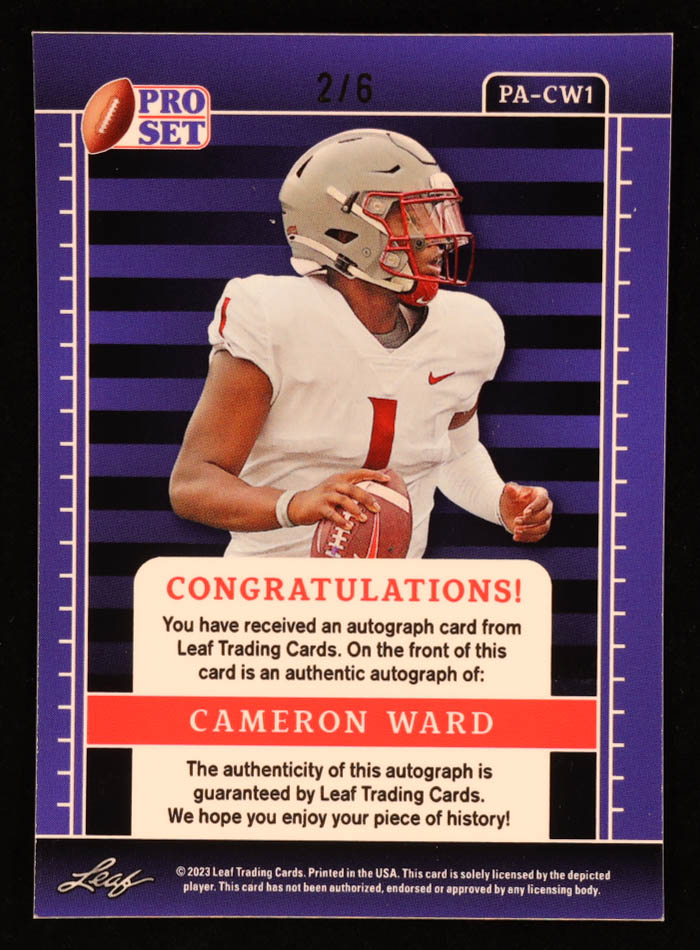 Cameron Ward 2023 Leaf Pro Set Metal Autographs Pulsar Purple #PA-CW1 RC #2/6