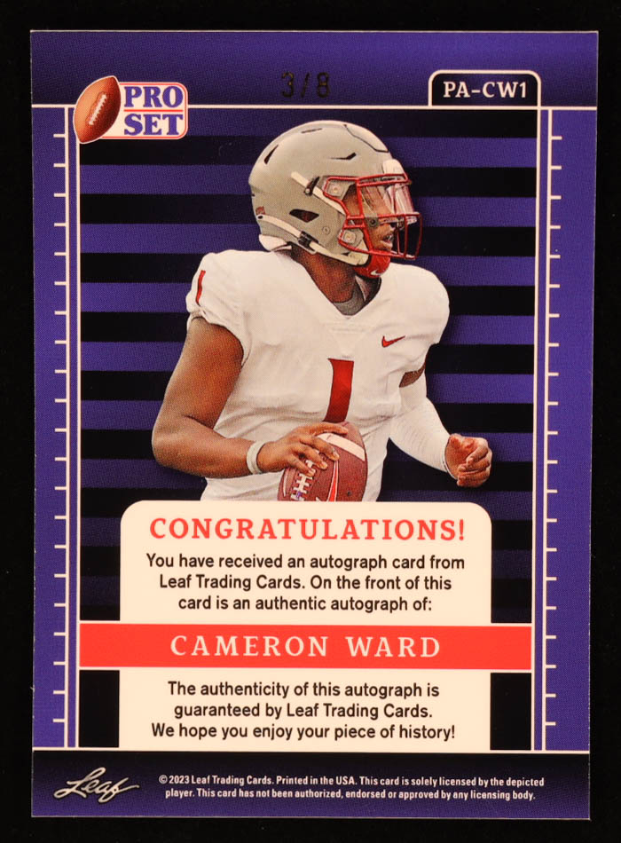 Cameron Ward 2023 Leaf Pro Set Metal Autographs Pulsar Blue #PA-CW1 RC #3/8