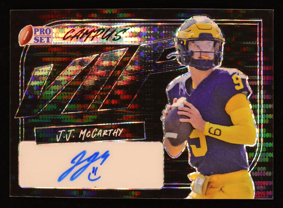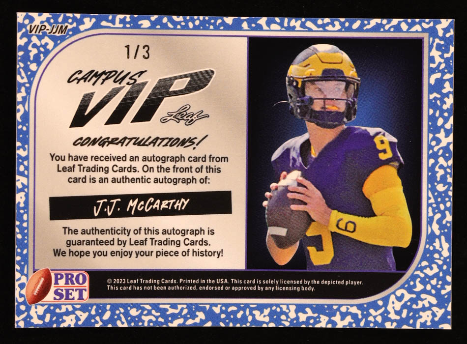 J.J. McCarthy 2023 Leaf Pro Set Metal Campus VIP Pulsar Black #VIP-JJM RC #1/3