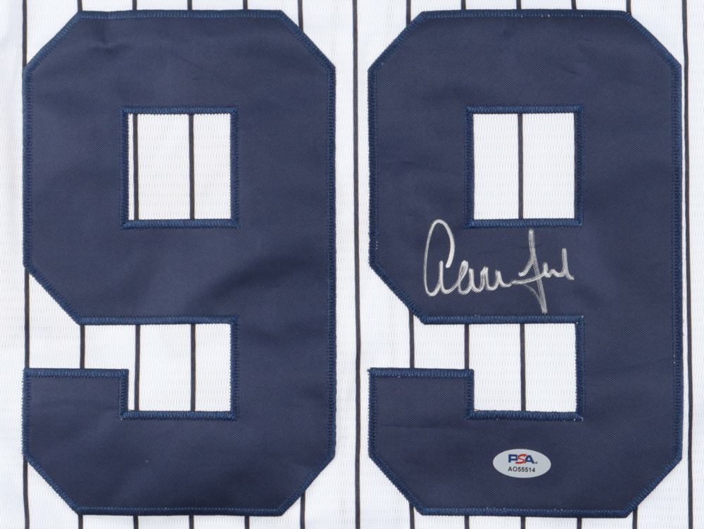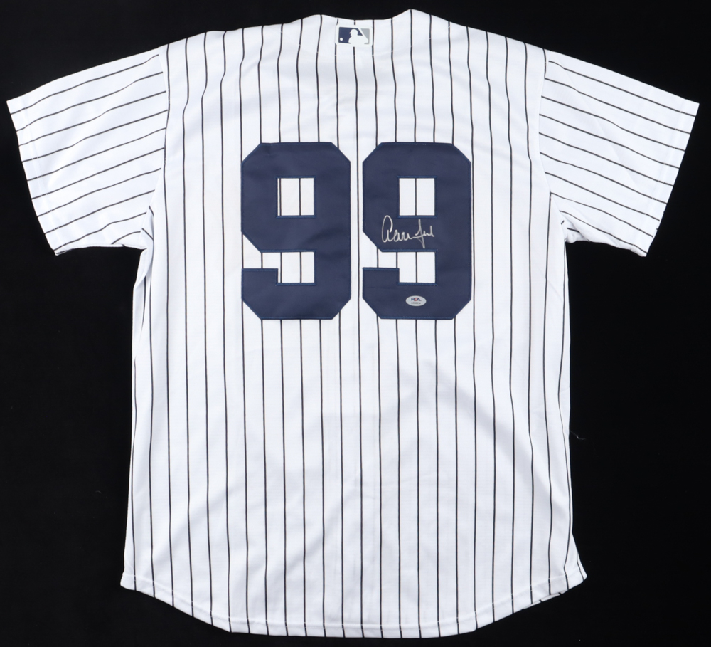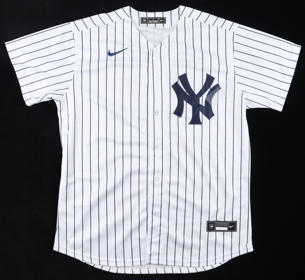 Nike jersey. Everything is sewn on, size L. Hand-signed by Aaron Judge.
