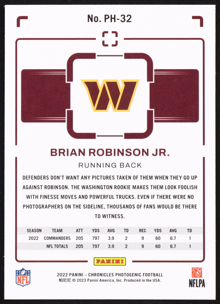 Brian Robinson Jr. 2022 Panini Chronicles Photogenic Teal #32 RC