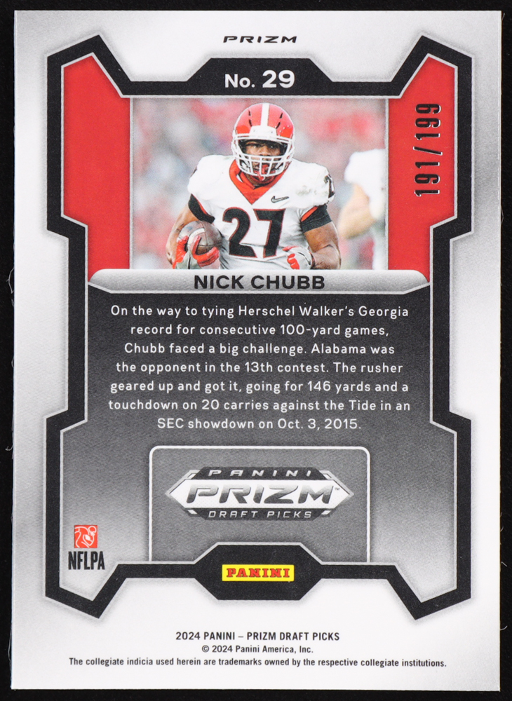 Nick Chubb 2024 Panini Prizm Draft Picks Prizms Blue #29 #191/199