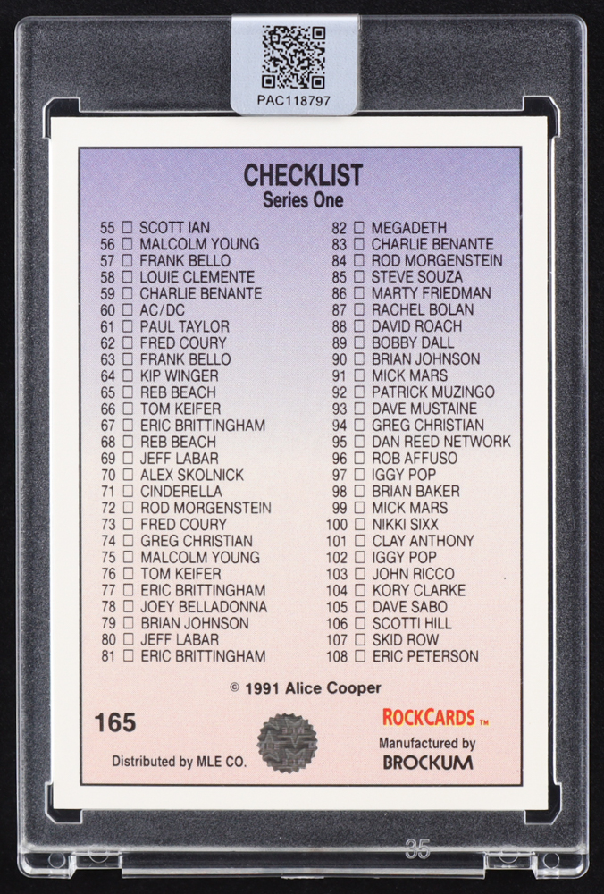 Alice Cooper Signed 1991 Rock Cards #165 Checklist (PA)
