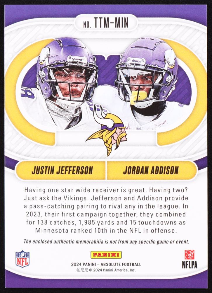 Justin Jefferson / Jordan Addison 2024 Absolute Team Tandem Materials #3 #41/199
