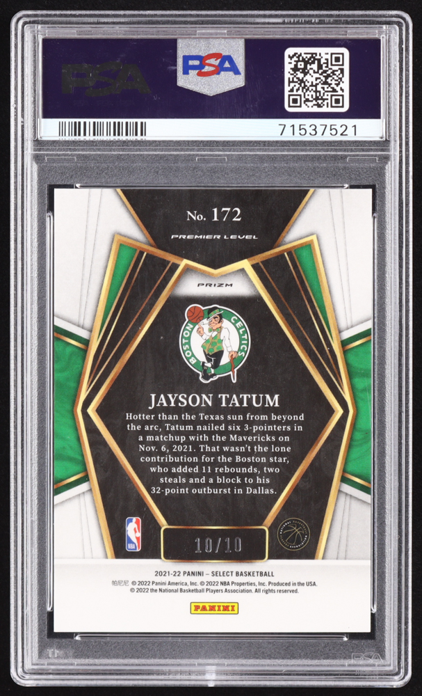 Jayson Tatum 2021-22 Select Prizms Gold Disco #172 #10/10 (PSA 10)