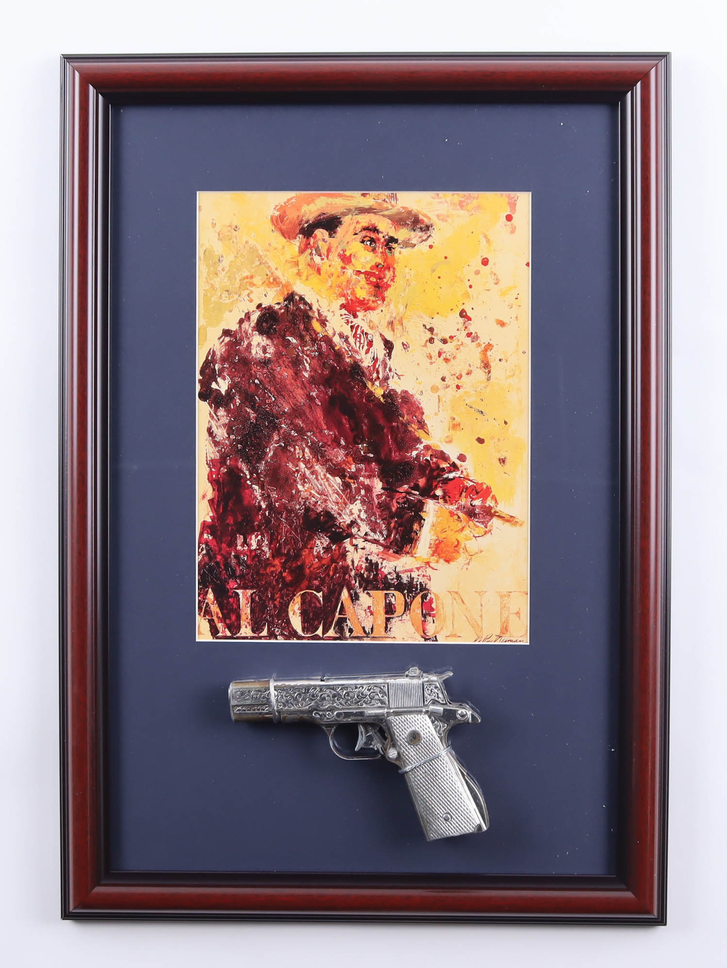 LeRoy Neiman "Al Capone" Custom Framed Art Print Display With Replica Pistol