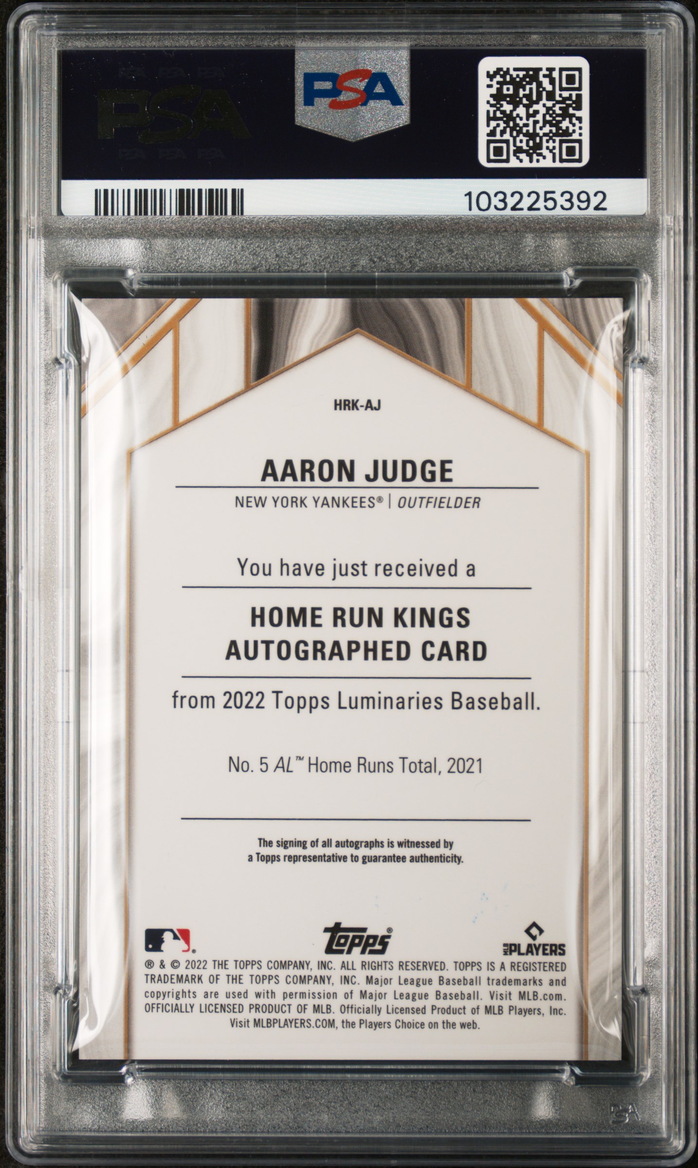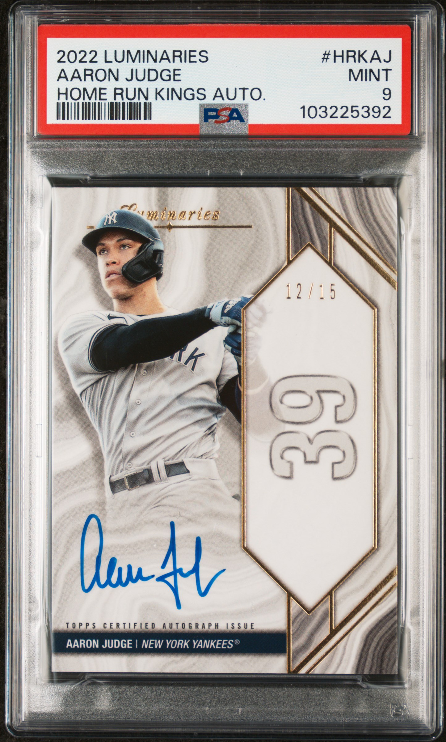 Aaron Judge 2022 Topps Luminaries Home Run Kings Autograph #HRKAJ 12/15 (PSA 9)