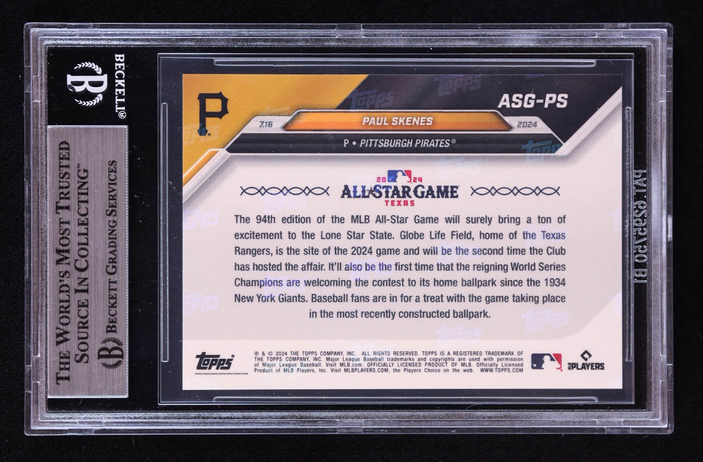 Paul Skenes 2024 Topps Now All-Star Game Selections #ASGPS RC (BGS 8)