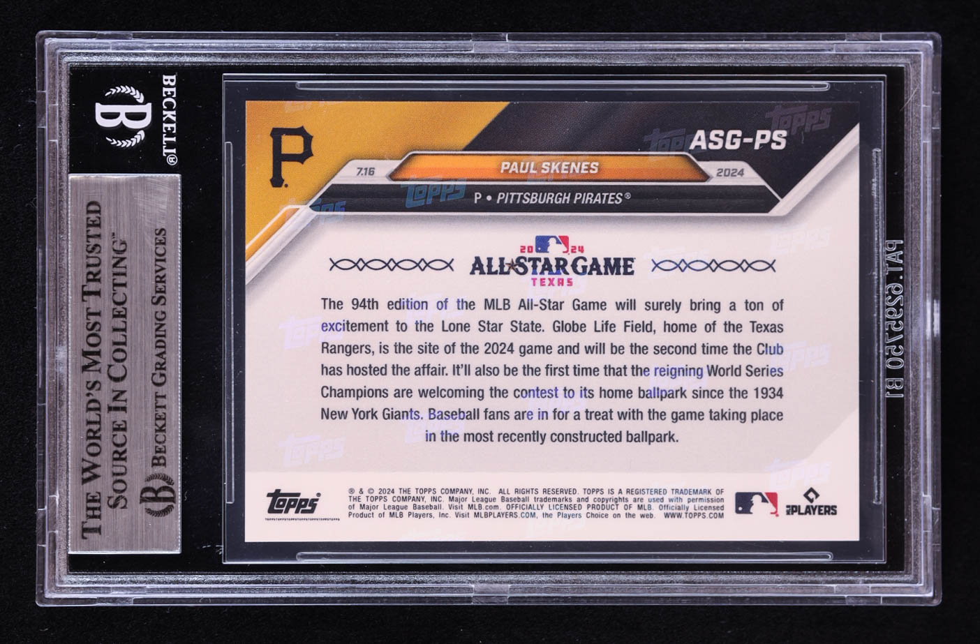 Paul Skenes 2024 Topps Now All-Star Game Selections #ASGPS RC (BGS 9)