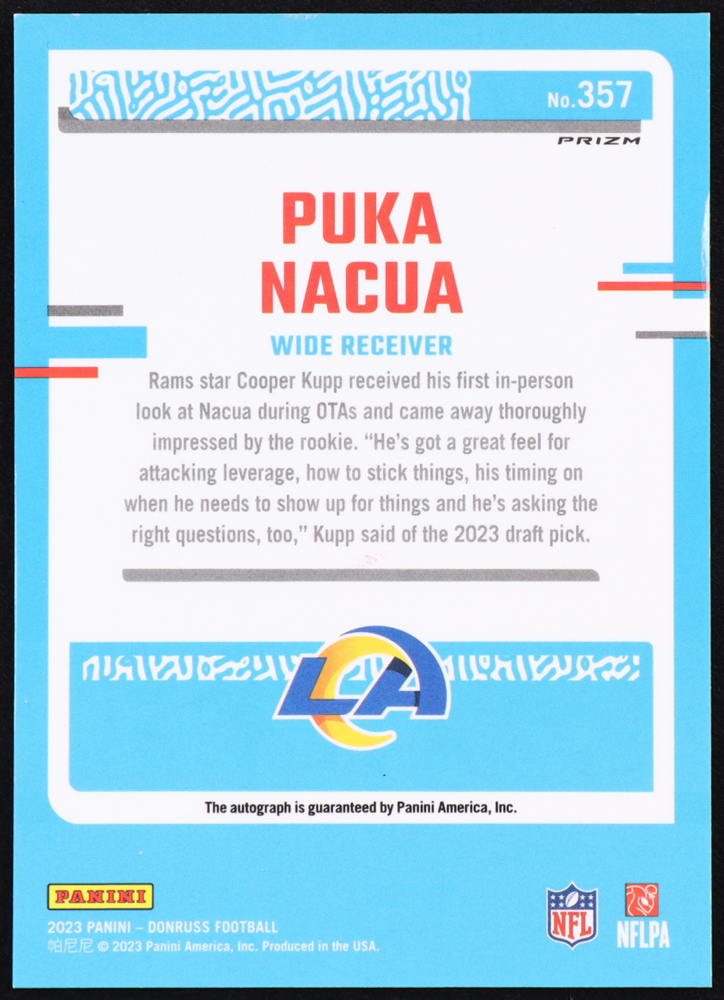 Puka Nacua 2023 Donruss Optic Rookie Signatures Holo #357 RR RC