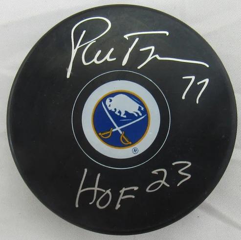 Pierre Turgeon Signed Sabres Logo Hockey Puck Inscribed "HOF 23" (JSA)