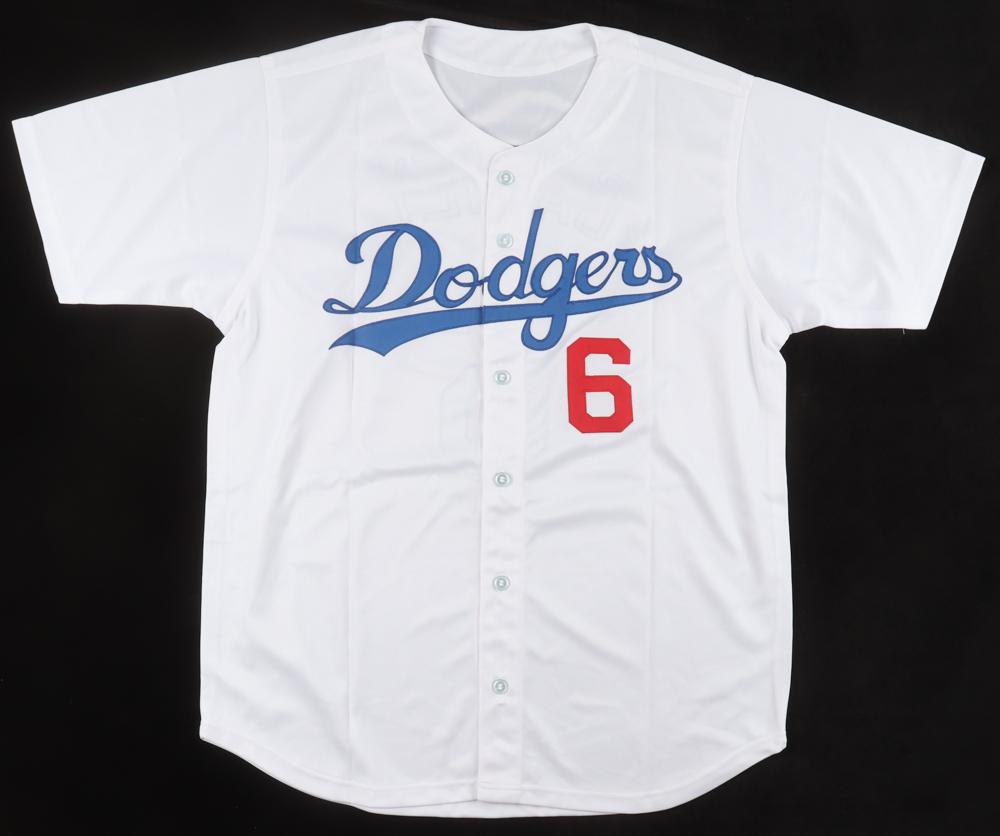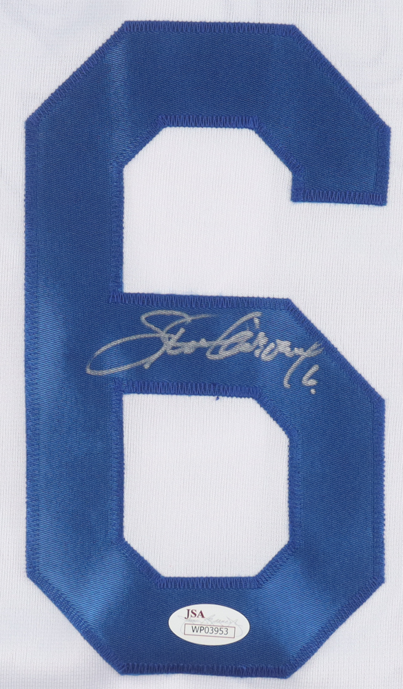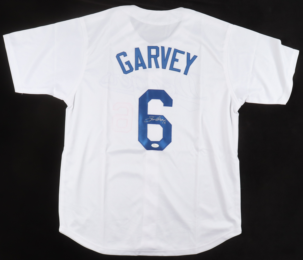 Custom jersey. Everything sewn on, size XL. Hand-signed by Steve Garvey.