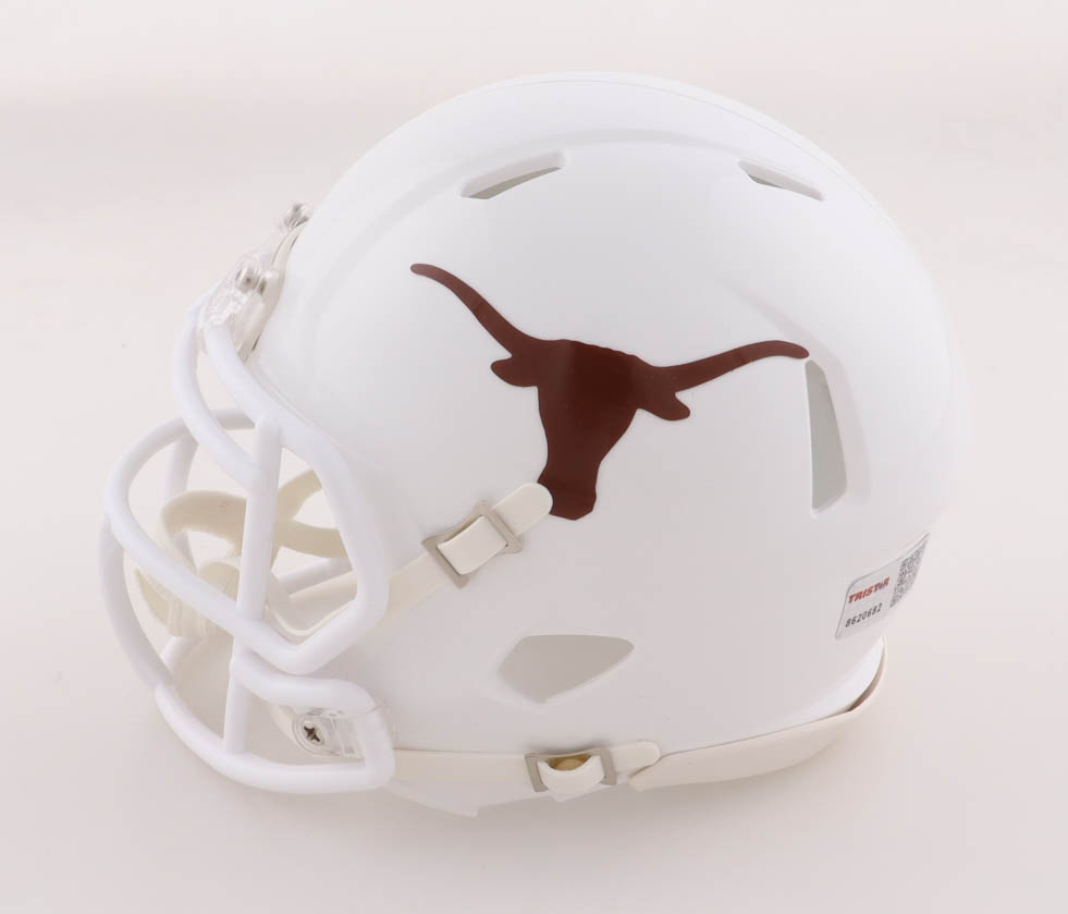 Riddell Texas Longhorns mini Speed helmet. Hand-signed by DeMarvion Overshown.