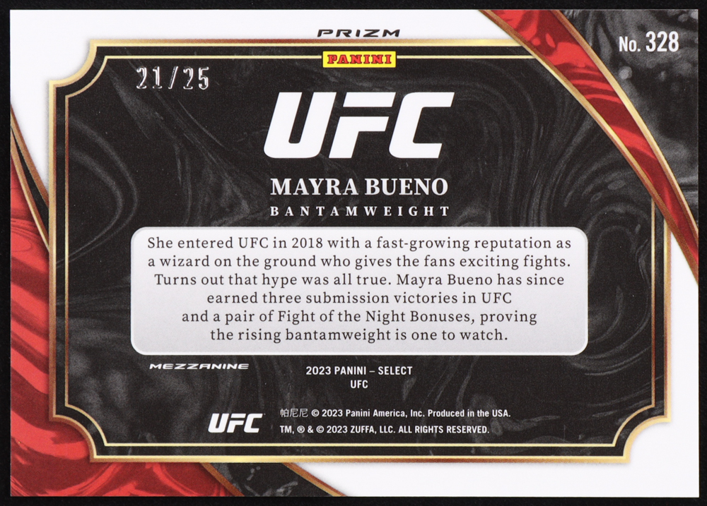 Mayra Bueno 2023 Select UFC Prizms Tie-Dye #328 RC #21/25