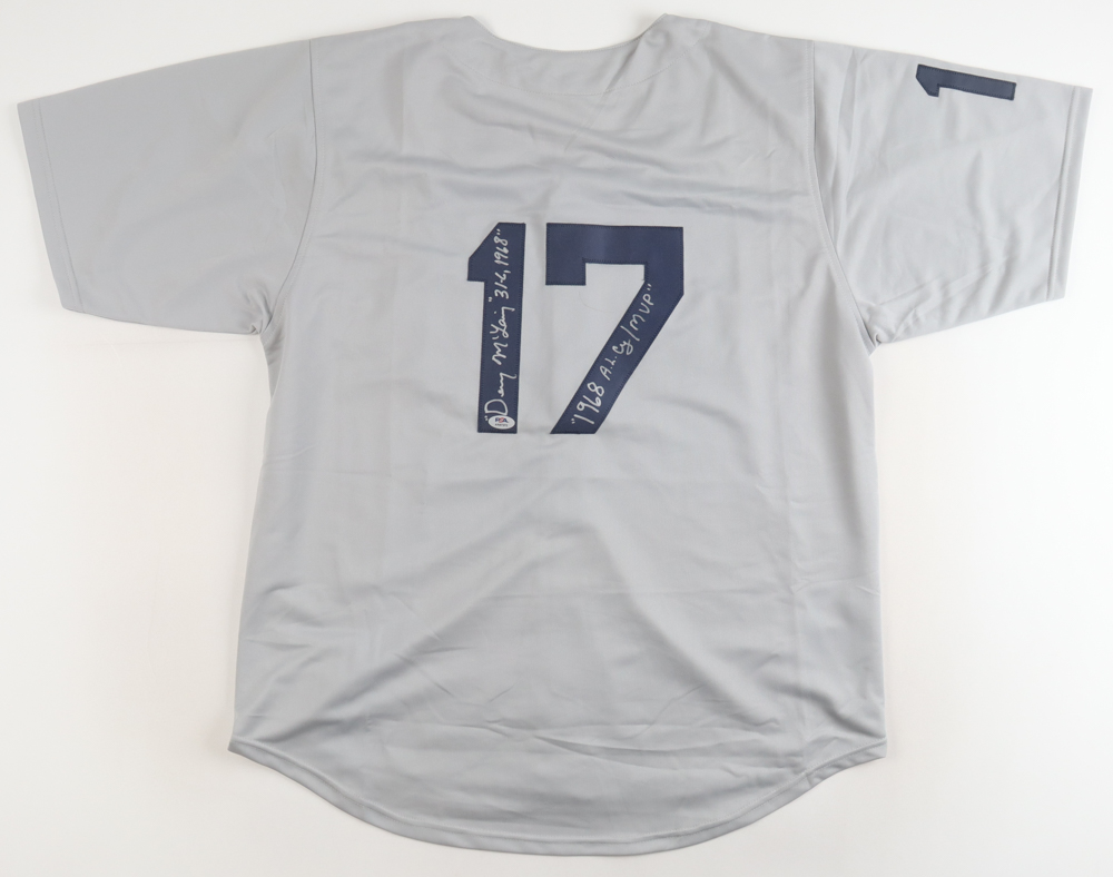 Custom jersey. Everything is sewn on, size XL. Hand-signed and inscribed by Denny McLain.