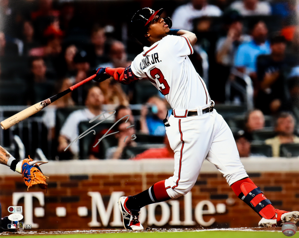 Photo measures 16" x 20" in size and has been hand-signed by Ronald Acuna Jr. (Atlanta Braves).