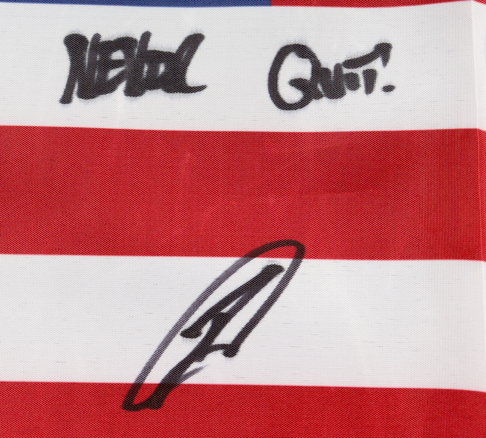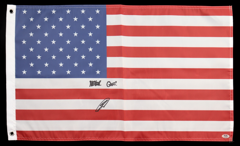 Robert O'Neill Signed 18x30 American Flag Inscribed "Never Quit!" (PSA)