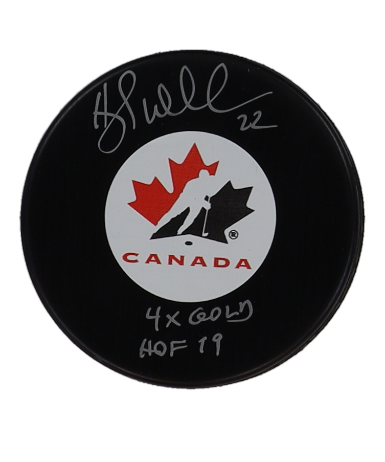Hayley Wickenheiser Signed Team Canada Logo Hockey Puck Inscribed "4x Gold" & "HOF 19" (COJO)