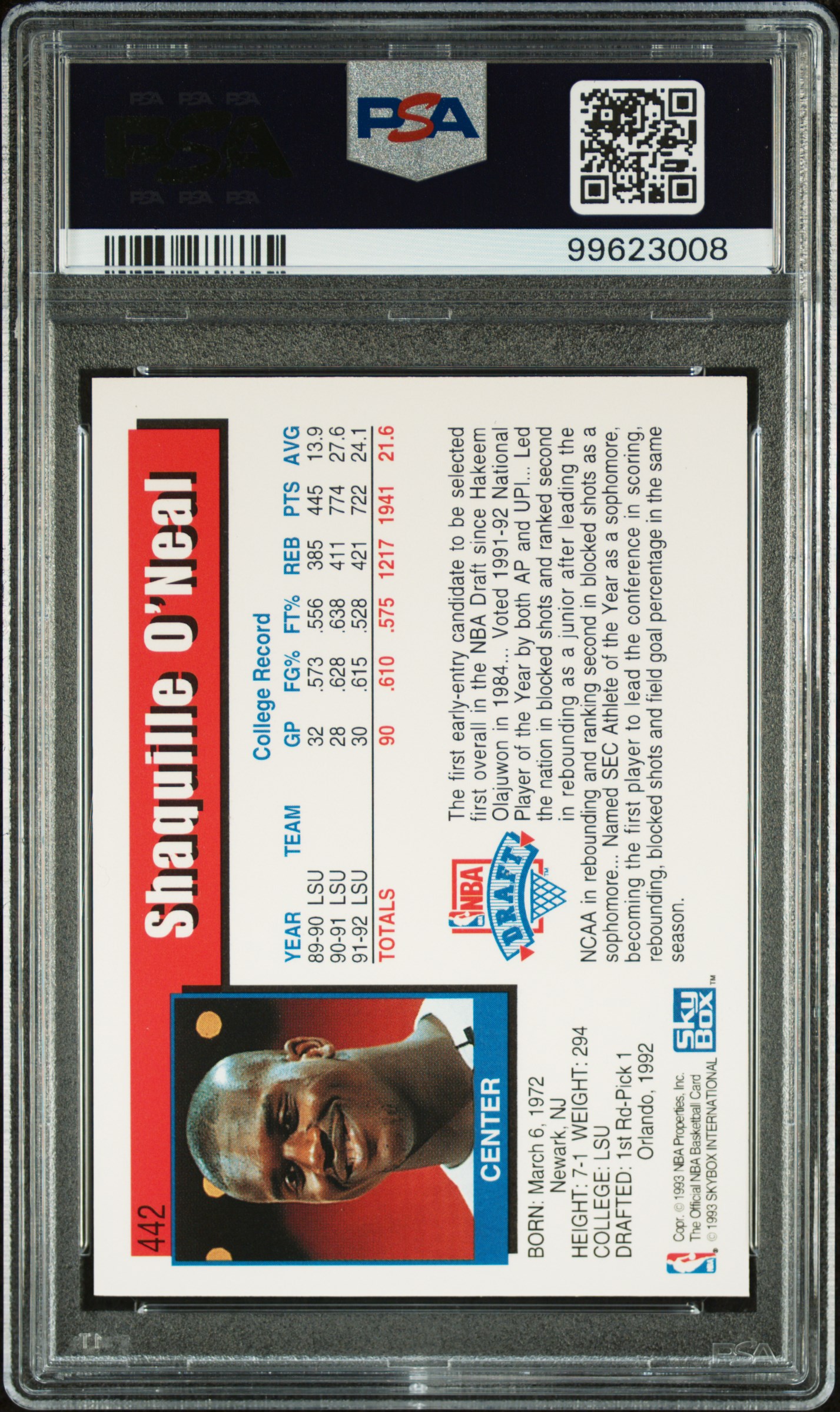 Shaquille O'Neal 1992-93 Hoops #442 RC (PSA 9)