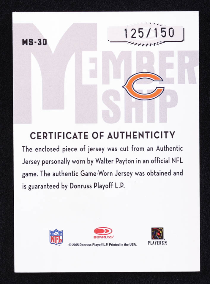 Walter Payton 2005 Donruss Classics Membership VIP Jerseys #MS30 #125/150
