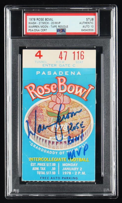 Warren Moon Signed 1978 Rose Bowl Ticket Inscribed "Rose Bowl MVP" (PSA | Auto Grade 10)