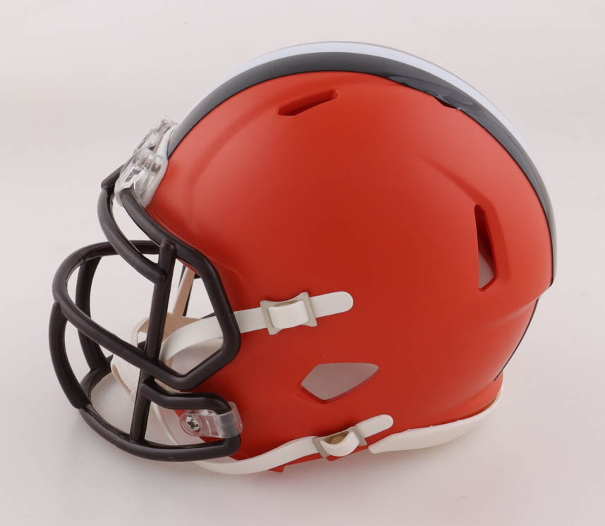 Riddell Cleveland Browns speed mini helmet. Hand-signed by Myles Garrett.
