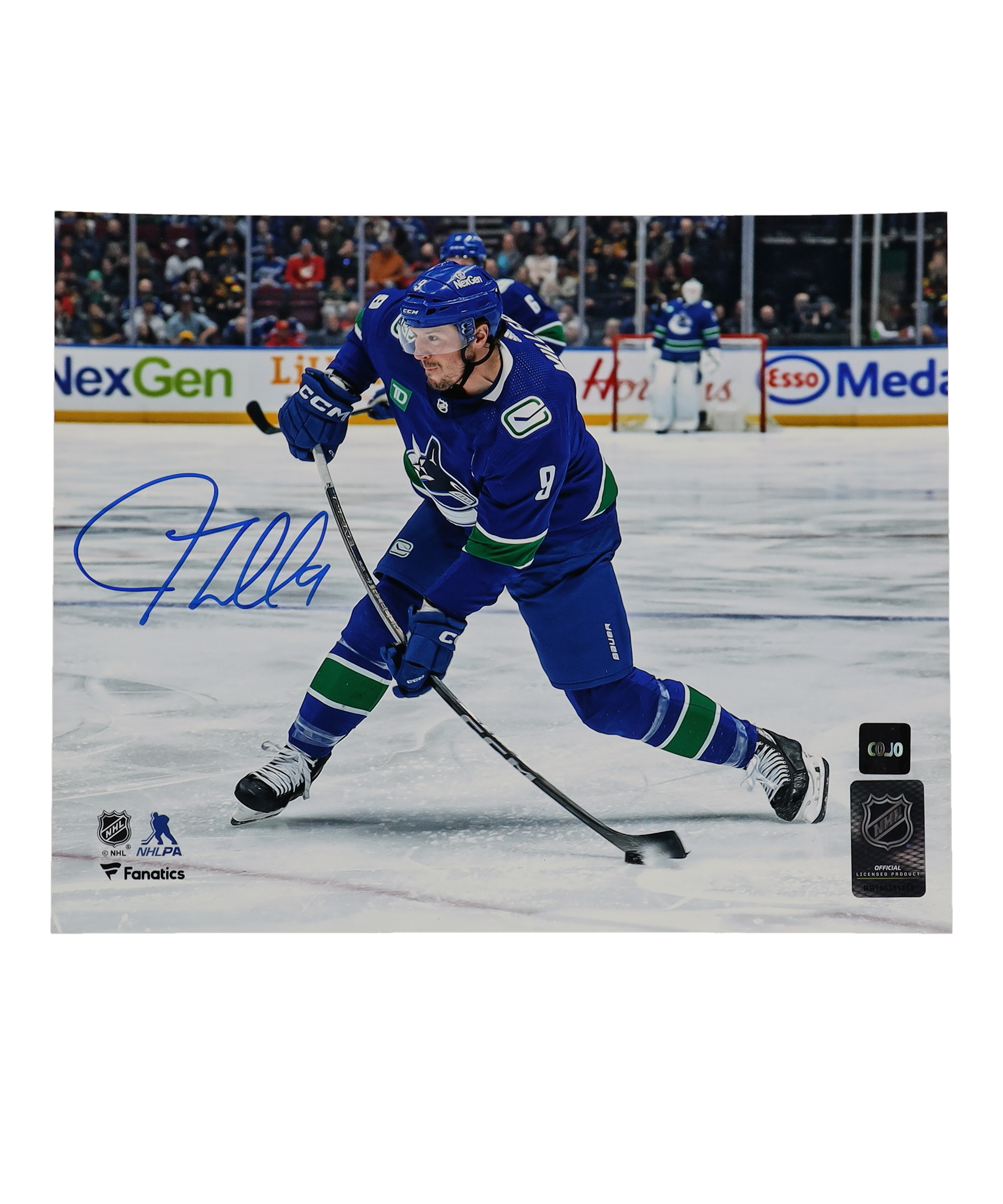 Photo measures 8" x 10" in size and has been hand-signed by J.T. Miller (Vancouver Canucks).