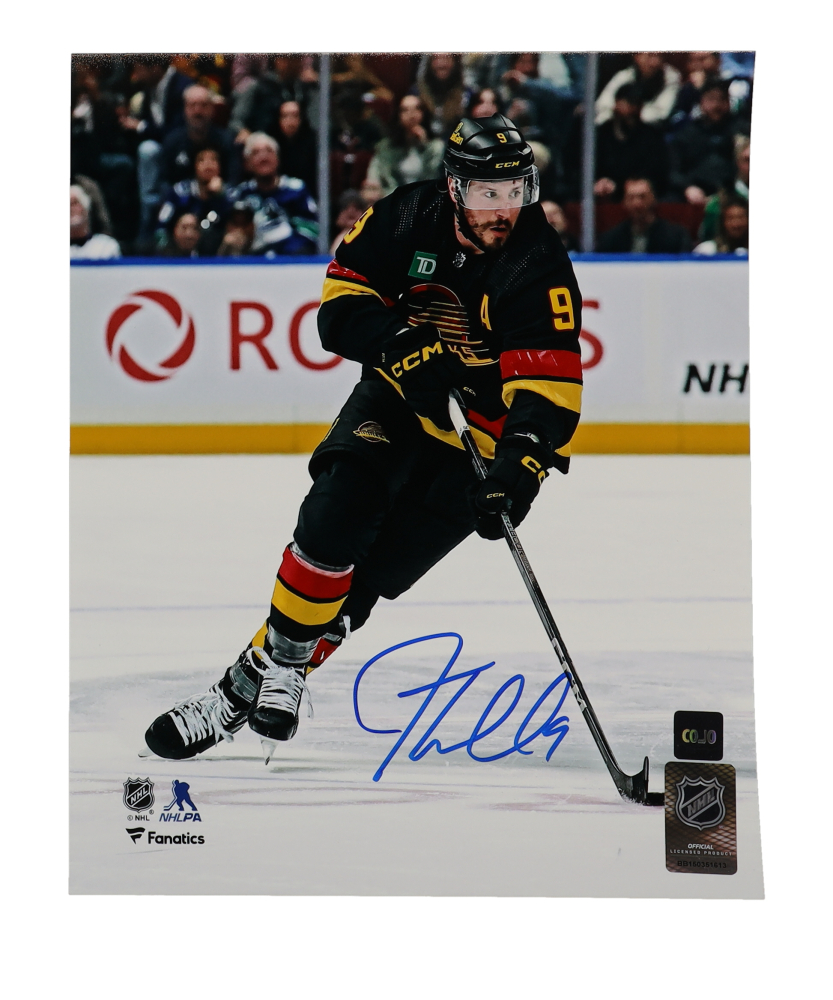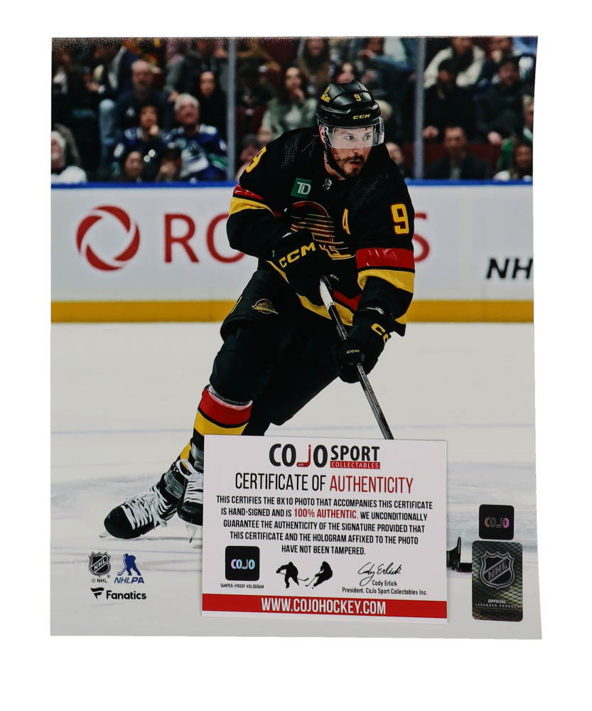 Photo measures 8" x 10" in size and has been hand-signed by J.T. Miller (Vancouver Canucks).