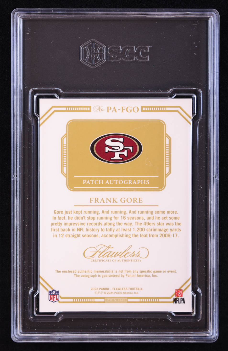 Frank Gore 2023 Panini Flawless Patch Autographs #54 #9/25 (SGC 9 | Autograph Graded SGC 10)