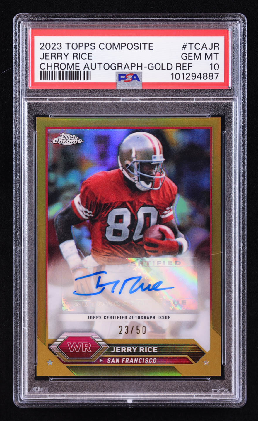 Jerry Rice 2023 Topps Composite Chrome Autographs Gold Refractors #TCAJR #23/50 (PSA 10)
