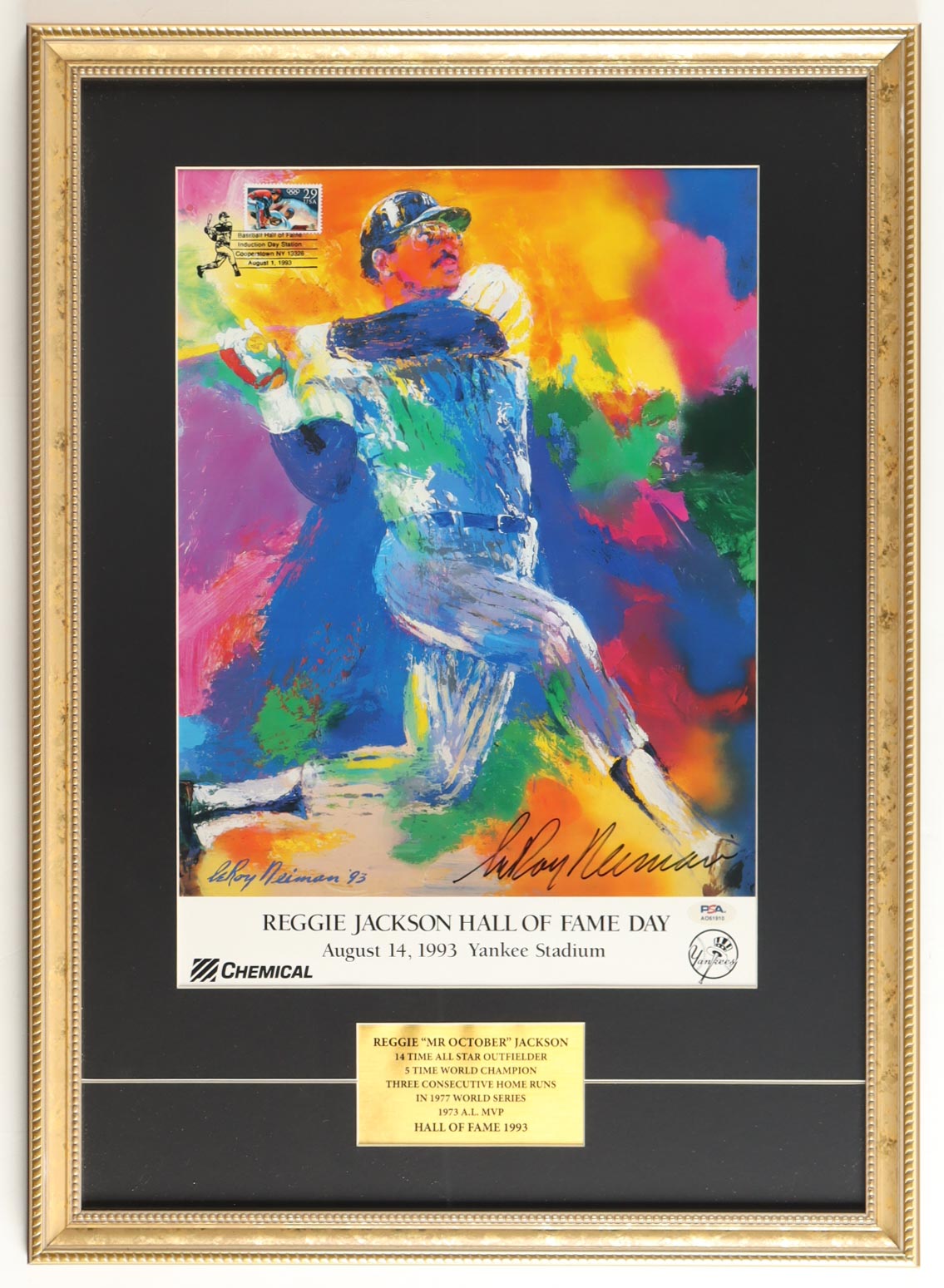 Leroy Neiman Signed "Reggie Jackson Hall Of Fame Day" Custom Framed Print Display (PSA)