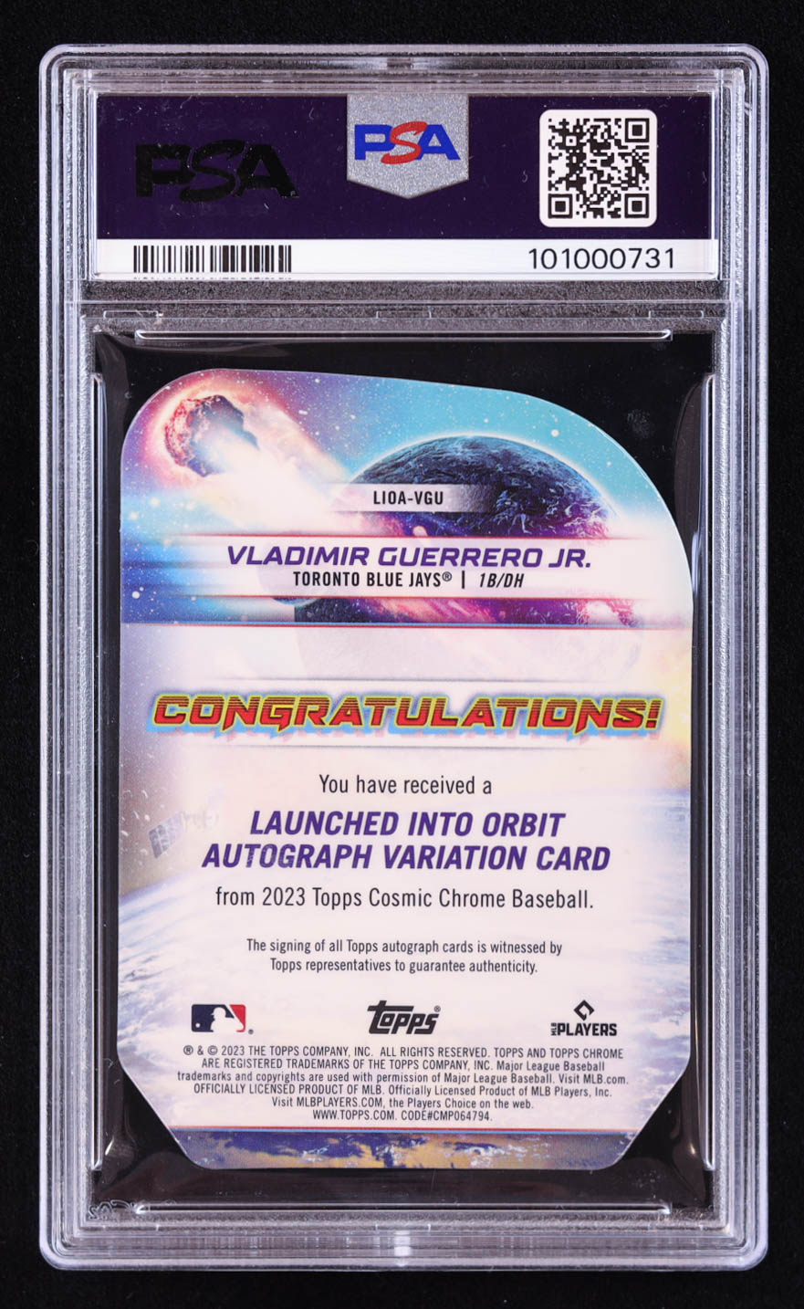 Vladimir Guerrero Jr. 2023 Topps Cosmic Chrome Launched Into Orbit Autographs #LIOAVGU (PSA 9)