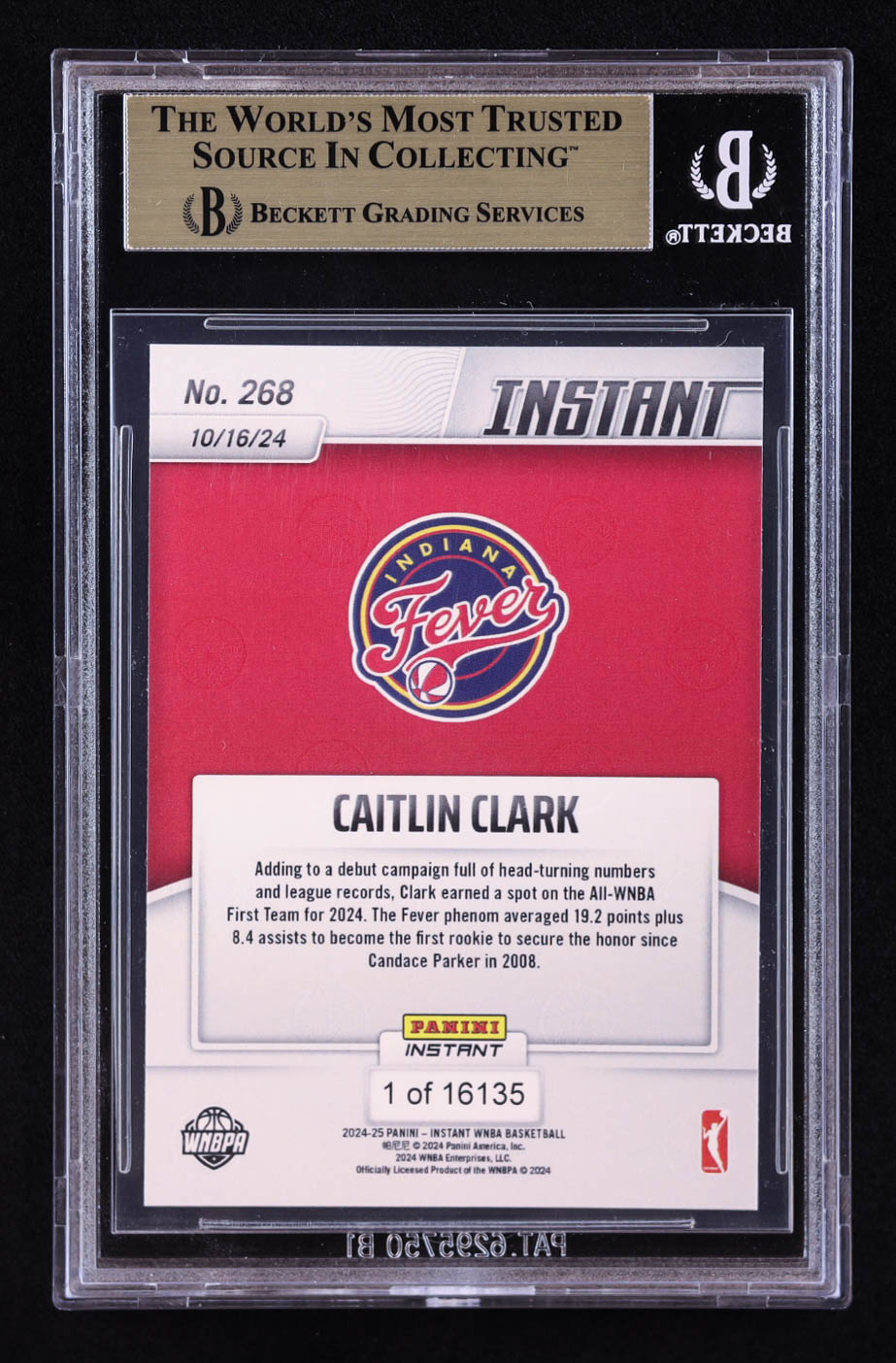 Caitlin Clark 2024 Panini Instant WNBA #268 RC (BGS 10)