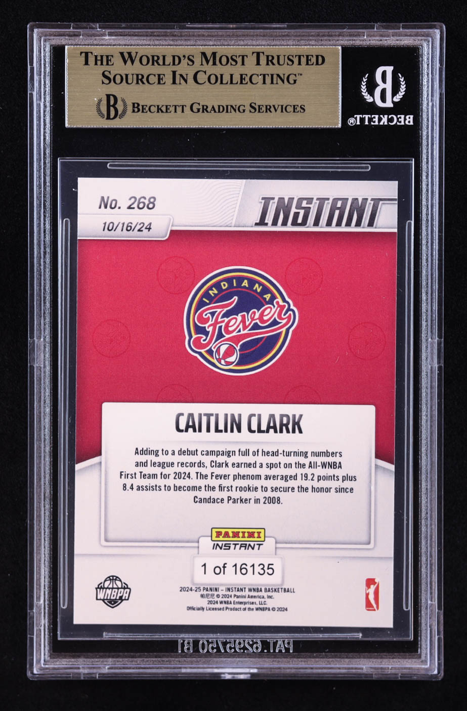 Caitlin Clark 2024 Panini Instant WNBA #268 RC (BGS 9.5)