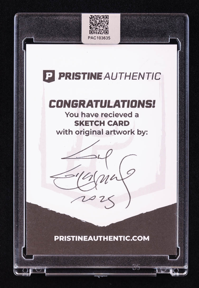 This sketch card includes original art by world-renowned illustrator, Guy Gilchrist.
