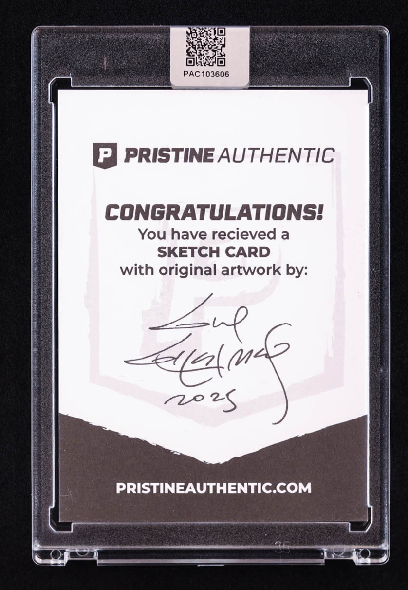 This sketch card includes original art by world-renowned illustrator, Guy Gilchrist.
