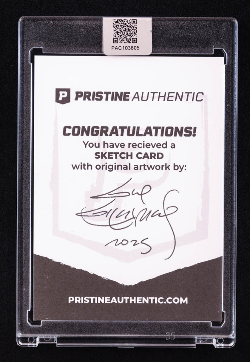 This sketch card includes original art by world-renowned illustrator, Guy Gilchrist.