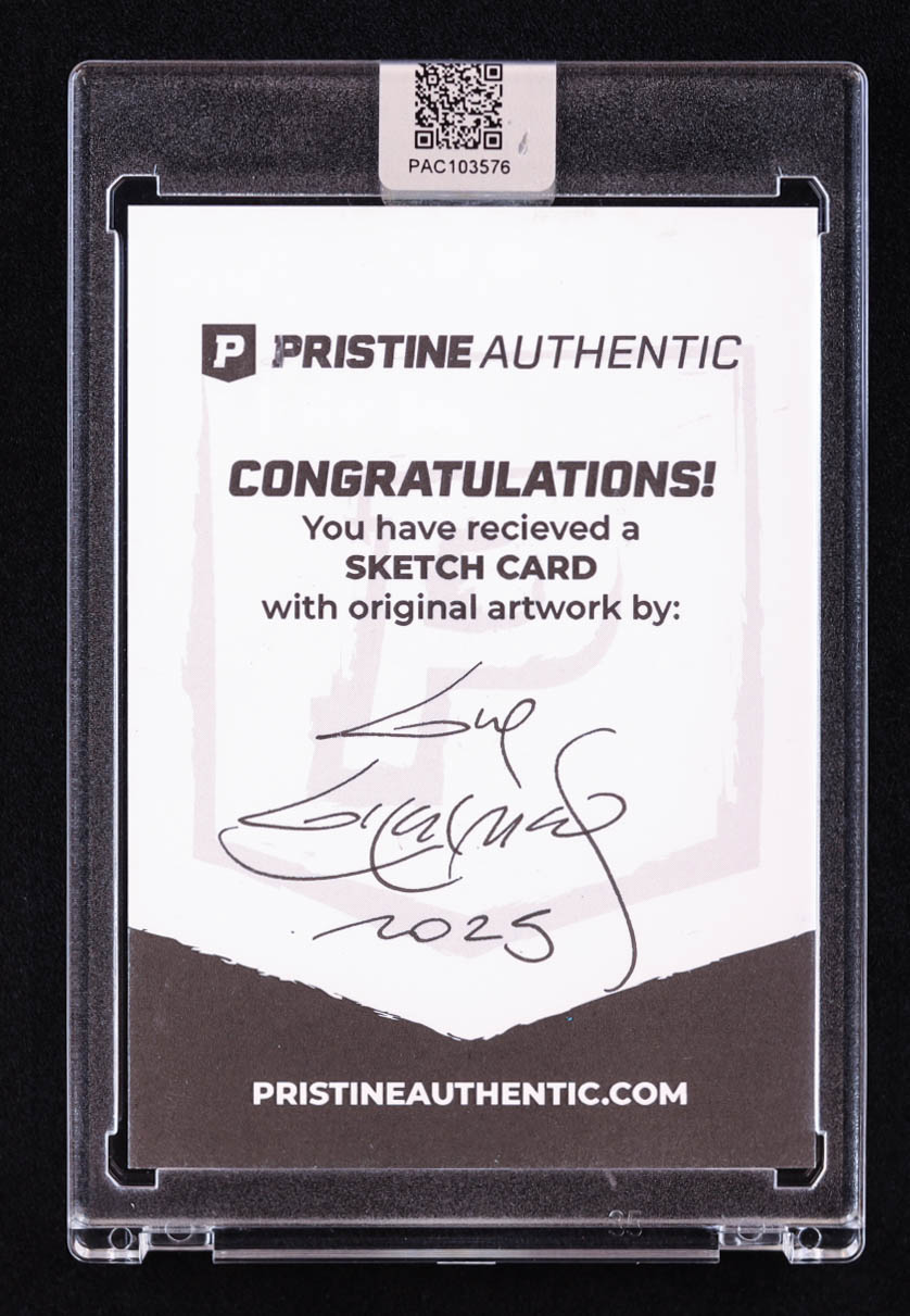 This sketch card includes original art by world-renowned illustrator, Guy Gilchrist.