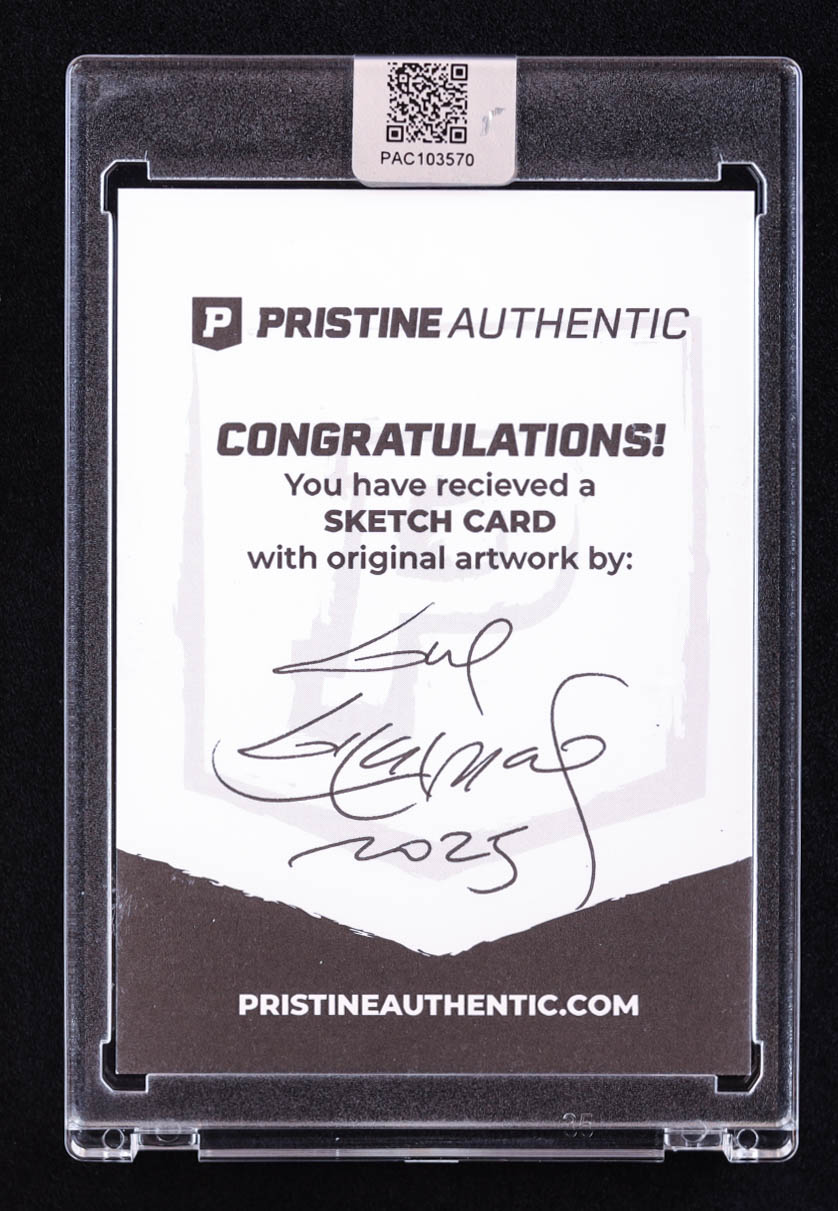 This sketch card includes original art by world-renowned illustrator, Guy Gilchrist.