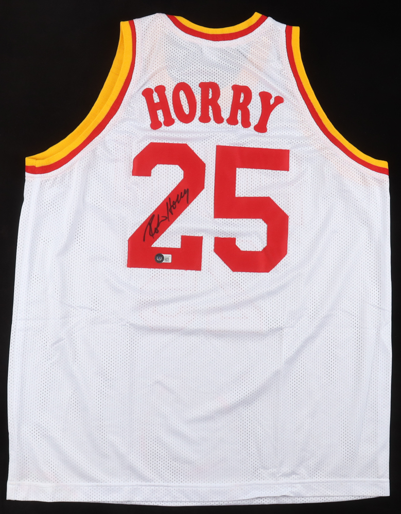 Custom jersey with everything sewn on, size XL. Hand-signed by Robert Horry.