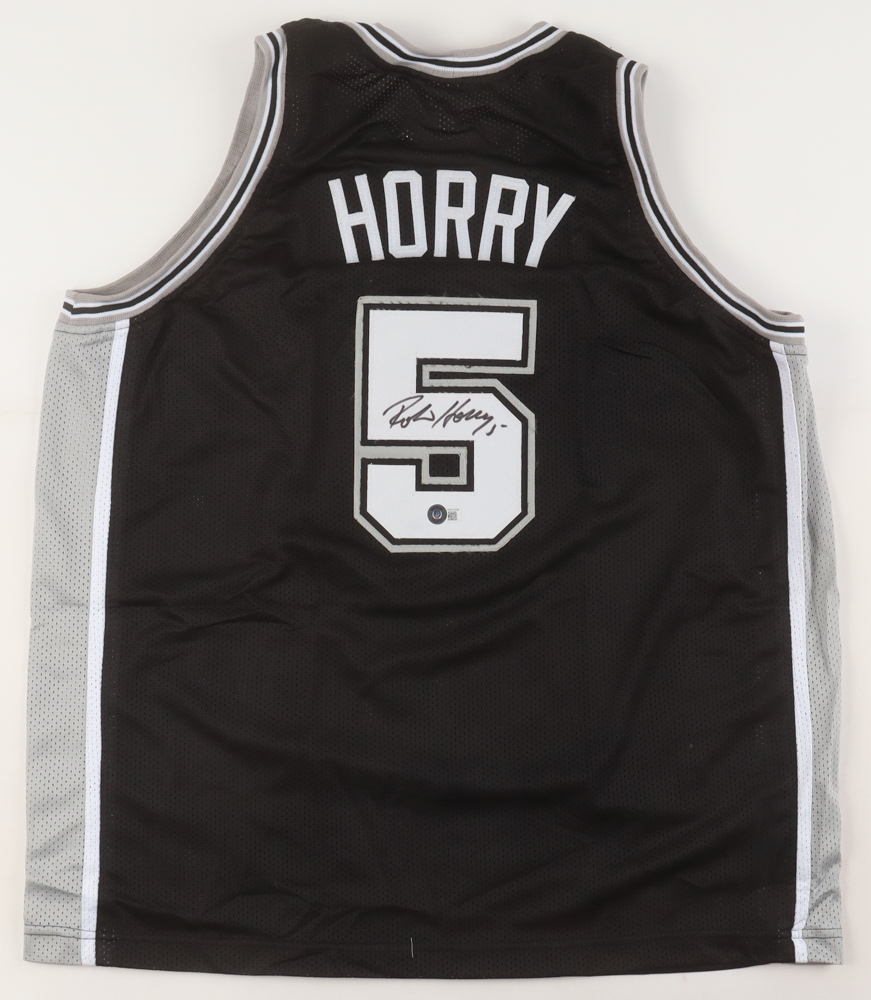 Custom jersey with everything sewn on, size XL. Hand-signed by Robert Horry.